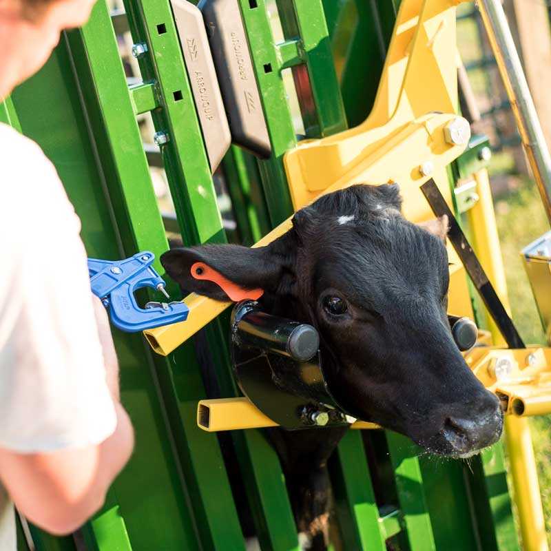 A chute needs to squeeze both sides of the animal, and have a non-slip floor. Calm animals require minimal pressure to hold them, and moving slowly and methodically can also reduce the risk of injury for cattle and handlers.