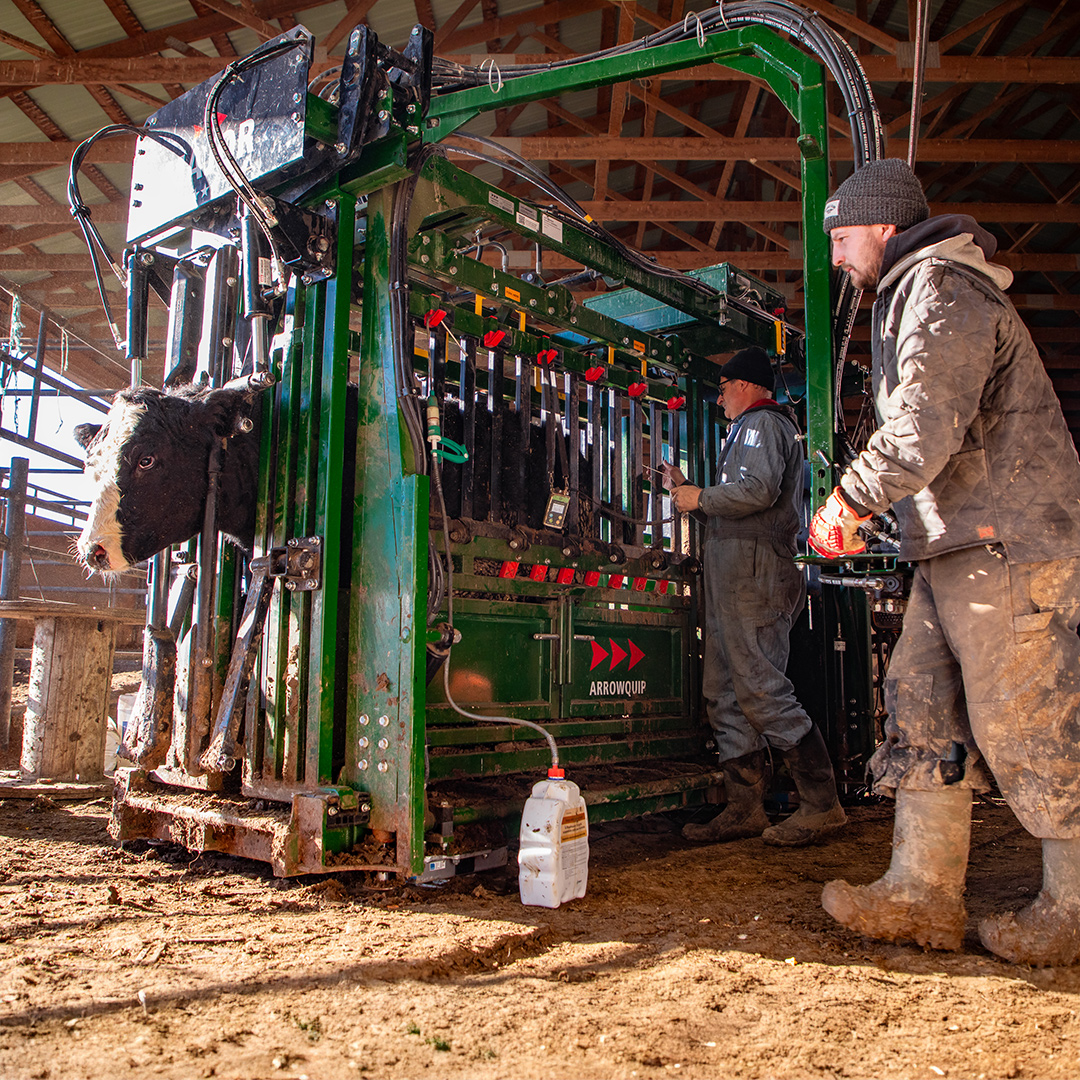 Designed for fast shoulder access while protecting cattle as they move through the chute. Built for high-speed branding and precise injections.