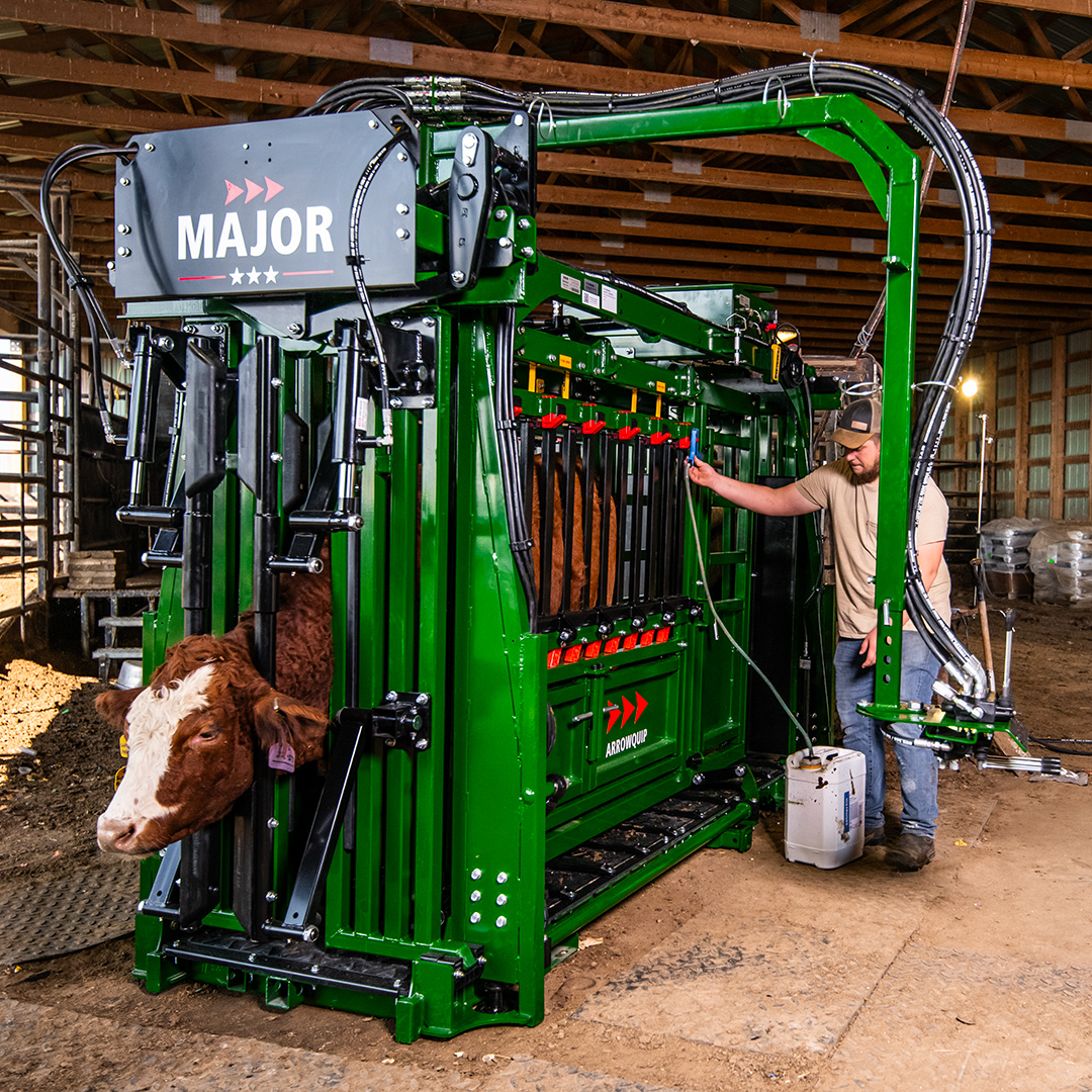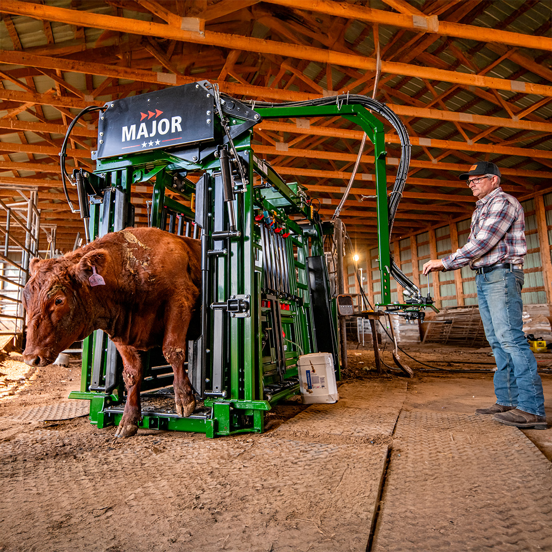 The Major Hydraulic Squeeze Chute is built for feedlot managers and operations that are on the move. For those that demand high throughput and zero excuses. As the market shifts toward heavier cattle, The Major provides the up to 31.5-inch internal width and reinforced frame required to safely process animals up to 1,800 pounds. This is a heavy-duty tool built to stand up to today’s heavier cattle and harder slams.